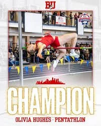 Huge congratulations to our former athlete Olivia Hughes, 2025 Patriot League Indoor Pentathlon Champion from Boston University.